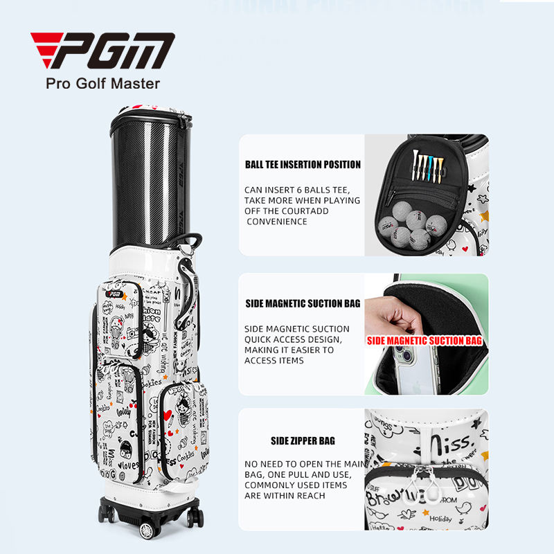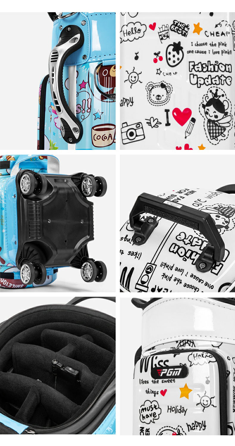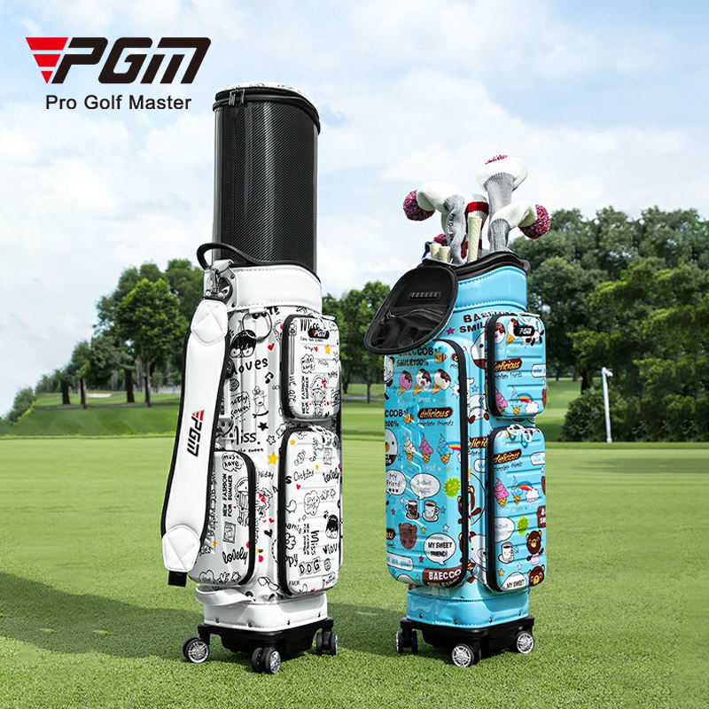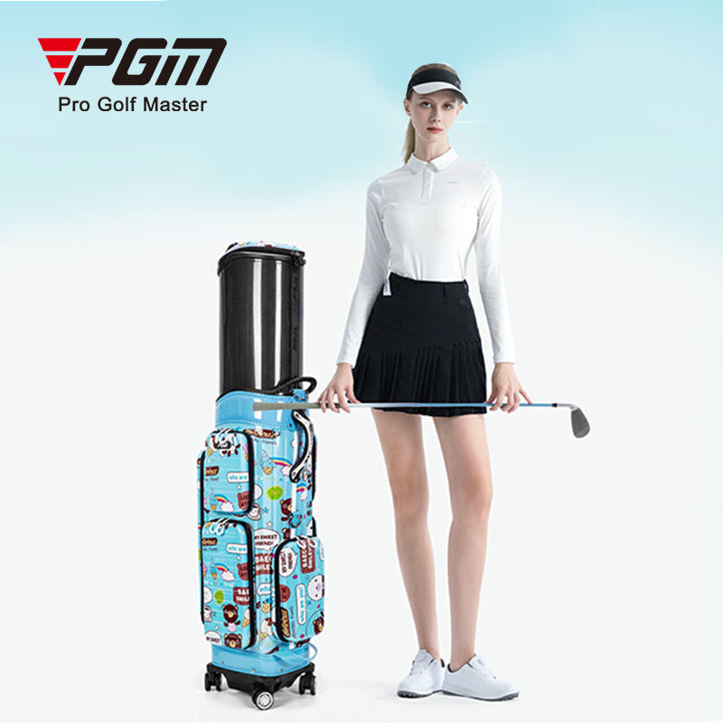 Túi đựng gậy golf du lịch PGM QB186 vỏ cứng in hình hoạt hình, dạng túi kéo có bánh xe